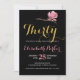 Convites Flor de bolinhas preto-ouro-aniversário de 30 anos