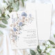 Celebre seu dia especial com este convite de casamento floral suave e romântico, perfeito para uma celebração clássica ou sazonal. O buquê de flores em aquarela - apresentando uma bela mistura de flores em azul empoeirado, branco e bege com folhas verdes suaves - é colocado no canto superior esquerdo, adicionando um toque calmo e elegante. A folhagem traz um equilíbrio natural e suave às flores sem sobrecarregar o design. O texto é posicionado na parte inferior direita e estilizado em uma mistura de fontes manuscritas e serifadas clássicas, criando um visual moderno e atemporal. Este layout oferece um equilíbrio encantador entre design e espaço aberto para destacar os detalhes do seu casamento. Perfeito para casamentos de outono, mas a paleta floral suave e o estilo elegante funcionam lindamente em qualquer estação. Totalmente personalizável e disponível como cartão impresso ou download digital.