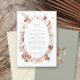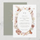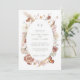 O moderno e romântico design de convite de casamento BOHO de flores silvestres foi pintado à mão em aquarela pela artista e designer internacionalmente licenciada, Audrey Jeanne Roberts. Flores silvestres secas e de cores quentes e suaves são arranjadas em uma moldura oval solta com arte de linha e um par de borboletas delicadas e folhagens de folhas de Gingko. Esta versão tem uma frente branca leve e arejada com texto em verde sage médio e fundo no verso. Direitos autorais.