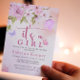 Este convite encantador apresenta um design moderno e caprichoso perfeito para celebrar a chegada de uma menina. O motif floral oriental apresenta um galho de árvores cor-de-água rosa pincelada, com folhas verdes delicadas, evocando um estilo japonês elegante. Quer você esteja hospedando um chá de fraldas temático ou simplesmente adorando flores de cereja, este convite dá o tom para uma bela e memorável celebração.