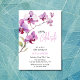 Elegante orquídea roxa de cor d'água em um convite de aniversário de pano de fundo branco. Fácil personalização para detalhes de nome, idade e evento para atender às suas necessidades.