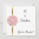 Convite para Festa de Aniversário Celebração de Aniversário Branco com Corte em Dourado e Flor de Pérola Rosa e Branca, Fabuloso aos 40. Personalize com seus detalhes.