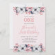 Celebre seu dia especial com este design de convite de aniversário floral. Este design apresenta belas flores e guião com um fundo cor-de-rosa pincelado.