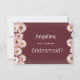 Você será minha dama de honra? Celebre seu dia especial com estes elegantes convites de casamento com burgundy, rosa-pincel-pincel e florais de margarida dourada. A paleta de cores ricas adiciona um toque de romance e luxo ao seu evento. Perfeito para casamentos clássicos, de boho ou de jardim. Totalmente personalizável para se adequar ao seu estilo e detalhes. Todas as designs são impressas.
