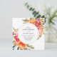O elegante e rústico design apresenta uma coroa de lindas flores acrílicas pintadas em cor-de-rosa-pincel e amarelo, com pop de folhas e folhagem roxas e verdes coloridas. Placa inversa em uma laranja totalmente personalizável. Este convite é perfeito para um casamento elegante rústico, ou celebração de verão ou primavera