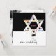 Estrela de David e flor da vida rodeiam as palavras que transmitem as emoções e o significado por trás do dia do casamento judeu.
