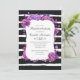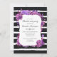 Convite moderno à festa de solteira com flores roxas e rosa e listras pretas e brancas. Entre em contato comigo, por favor, se precisar de itens adicionais.