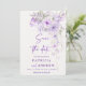 Convites Flor Roxo Salve a data Modelo DIY