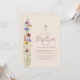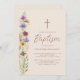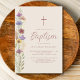 Este convite floral rustico do Batismo é decorado com flores silvestres de aquarela, tipografia elegante de script, e uma cruz sobre fundo de creme mole. Adequado para o batismo de um bebê ou de uma menina. Facilmente personalizável. Original Watercolor © Michele Davies.