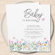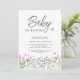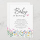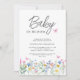 Você está planejando um chá de fraldas exclusivo? Este charmoso convite floral inclui flores silvestres e borboletas. Sua tipografia com na moda diz "Baby in Bloom". Facilmente personalizável. Original Watercolor © Michele Davies.
