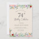 Convites de Aniversário de Adulto | Convite Elegante de 74 anos Floral Bege Rústico