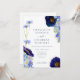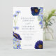 Convite de casamento rústico boho azul marinho com tipografia em folha dourada elegante e flores silvestres de verão. Adicione as iniciais do monograma da noiva e do noivo a esta bela obra de arte de flores de verão pintada à mão em aquarela, incluindo centáureas, papoulas, cosmos, miosótis e folhagens. Papelaria de casamento temática botânica com flores da primavera e do verão em azul empoeirado, azul rosado, azul marinho, roxo, verde e amarelo. Modelo fácil de usar e perfeito para um casamento único com tema de jardim de prado. Arte original única da artista Catherine Sweetman.