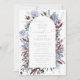 Desenho de flor silvestre roxa azulada, com texto clássico. Jardim rústico, desenho floral rural. Tons de azul suave, prata pálido e tons de ameixa.