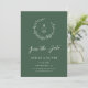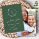 Este elegante casamento salva a data mostra um belo fundo verde profundo, coroa de flores silvestres desenhada à mão, suas iniciais, e tipografia elegante. No verso está sua foto em formato vertical. A foto no verso é removível, se necessário. É uma design perfeita para um casamento rústico, mas elegante! Veja a coleção para mais itens!