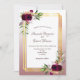 Na frente: uma rosa de canela gradiente, fundo rosa mutado com uma falso estrutura dourada e branca. Decorados com flores, rosas, penas e verde, de cor aquosa e arborizada. Modelos para seus nomes e detalhes do casamento. Os nomes são escritos com uma escrita de estilo escrita à mão, texto rosa de canela escura. Volta: gradiente de rosa de canela.