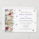 Elegante e caprichosa, este convite para o casamento apresenta uma adorável design de flores rosa-d-água e roxas, incluindo rosas, tulipas, lavandas e eucalipto verde com borboletas brilhantes e espécimes do gênero Bombus spp. voando por aí. Isso seria perfeito para um casamento realizado durante primavera ou verão. Você pode personalizar todos os detalhes de texto e posicionamento gráfico de acordo com suas necessidades específicas. Entre em contato com o designer para obter produtos correspondentes que não estejam disponíveis.