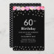 40º ou 60º Aniversário com diamantes em Convite de festas preto. Delicar as flores cor-de-rosa como cabeçalho.