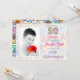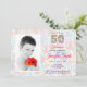Celebre seu fabuloso aniversário de 50 anos com este convite de fotos de aniversário elegante, divertido e personalizado. O design é floral com o texto cor azul-rosa e escuro. Substitua a foto da amostra pela sua. O texto pode ser alterado de acordo com as suas necessidades. Os lados frontal e traseiro do cartão têm o mesmo motivo floral que o número "50".