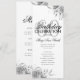 Design de "Programa de Festa de aniversário" elegante com Convênio Floral em Prata com texto personalizado.