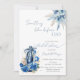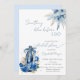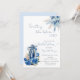 Este convite elegante apresenta um charmoso arco azul, garrafa de vinho e rosas azuis perfeitos para um chá de panela "algo azul". Esses convites de chá de panela são facilmente personalizados para o seu evento simplesmente adicionando seus detalhes.