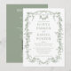 Este convite de casamento verde, tudo em um sábio, combina o charme vitoriano vintage com a função moderna, com sotaques florais suaves, um monograma refinado e um conveniente código QR para fácil acesso às informações do casamento. Ideal para casais que buscam um equilíbrio gracioso entre tradição e tecnologia.