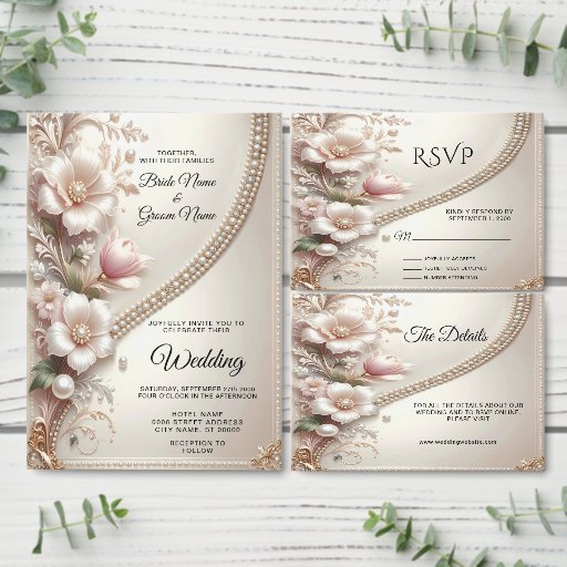Convites Floral and Pearl Embellishments Engagement