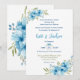 Acentuações florais caprichosas em aquarela azul e fontes visualmente agradáveis tornam um convite de casamento elegante, evocando o ditado "Algo velho, algo novo, algo emprestado e algo azul". Principalmente formal em estilo, com elementos mais casuais entrelaçados, este design combina perfeitamente estéticas vintage e modernas.
