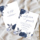 Convite Floral Azul Brilhante de Casamento de Verão com RSVP, projetado com flores aquarelas em tons de cinza azul e macia, sobre fundo branco. O texto frontal inclui: Data de Casamento, Hora, Local, Endereço e Nota de Recepção da Noiva e do Grupo. O inverso é um design floral correspondente aos seus Detalhes de RSVP. Para personalizar, basta inserir seu texto em nosso modelo fácil, passo a passo, substituindo o exemplo. Certifique-se de ver a coleção completa de artigos de papelaria azul de Casamento de Verão para cartões e acessórios correspondentes. Esta placa está disponível em Impressão e Download.
