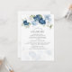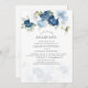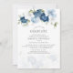 Uma classe moderna e elegante de convite à festa de formatura de 2025, com rosas brancas azuis azuis poeirentas, com flores de aquarela suculentas de eucalipto verde. Esta design de tendências é perfeita para anunciar a sua festa de formando e convidar os seus convidados. A design tem uma tipografia moderna sobre um fundo branco com texto fácil de editar