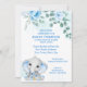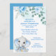 Convites Floral Azul do Chá de fraldas Elefante