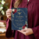 Convites Floral Azul do Marinho Dourado para graduação de F