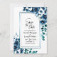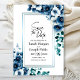 Avise seus amigos e família sobre seu dia especial em estilo com este moderno cartão azul de casamento floral. Os modelos de texto fáceis de usar tornam a adição de todas as informações necessárias uma tarefa rápida e simples. Com uma variedade de tipos de papel e estilos de canto para escolher, você pode criar placas verdadeiramente exclusivas que reflitam sua individualidade, juntamente com a opção de baixar se preferir um formato digital.