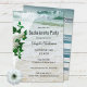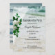 Uma galinha elegante ou um convite de festa de solteira com um design de praia com tema de renda, oceano, véu de casamento com flores de orquídea e pérolas adoráveis. O local na parte traseira da placa é opcional. Bonita para um casamento de praia planejado ou festa náutica.