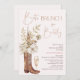 Floral Beige Boots Brunch Chá de panela de espuma Boho Boho botas florais, chá de panela de brunch e borbulhamento com um arranjo floral cor bege com palma, bota de vaquinha marrom, vidro de champanhe e uma caligrafia moderna em um fundo colorido de cor clara.