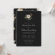Simples Na moda Floral Negra Convite Para Casamento. Este romântico e melancólico convite de casamento mostra uma bela cor d'água pintada à mão, cor rosa pincelada e verde elegante. Um padrão de capricho está no verso, mas pode ser facilmente apagado se preferir. Esta é parte da coleção de Casamento Escuro Elegante.