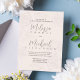 Esta design apresenta um convite para casamento floral com um código QR elegante, blush de código, com um simples modelo, um texto de caligrafia de na moda, informações detalhadas, resposta de convidado, um mínimo clássico de classe moderna, com um gerador de código QR digitalizável, uma folha de folhagem de verde na moda, um link de endereço web URL, uma flor de rosa de jardim romântico, uma estação formal tradicional Cada suite.