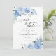 Casamento floral de aquarela salve o cartão de data. Flórida elegante, salve o cartão de data com lindas flores pintadas manualmente em azul-poeirento claro e verde com um roteiro elegante de caligrafia. Um casamento floral azul moderno salve o cartão de data. Você pode personalizar o texto, o estilo da fonte, a cor e o tamanho em frente e atrás do cartão. Por favor, sinta-se à vontade para contactar-me para obter os itens correspondentes.