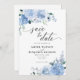 Convites Floral Botânico Azul Elegante Salvar a Data
