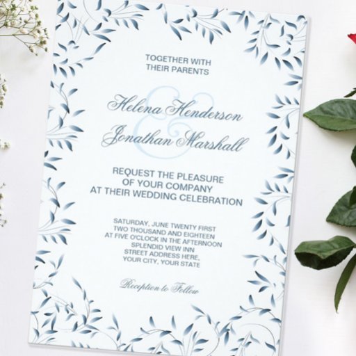 Convites Floral Branco e Azul Elegante do Jardim Selvagem