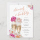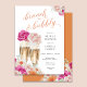 Chá de panela cor-de-rosa brilhante com script personalizado 'brunch and bubble' apresenta duas flautas brilhantes de champanhe e flores cor-de-água rosa sobre elas. Escolha entre nossas opções de cor e verifique os outros produtos correspondentes.