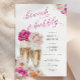 Chá de panela cor-de-rosa brilhante com script personalizado 'brunch and bubble' apresenta duas flautas brilhantes de champanhe e flores cor-de-água rosa sobre elas. Escolha entre nossas opções de cor e verifique os outros produtos correspondentes.