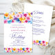 Celebre o amor no florescimento do cheio com este vibrante convite ao casamento floral. Adorado com flores cor-de-rosa, amarela, azul e roxa, este convite maravilhosamente desenhado é perfeito para convidar amigos e entes queridos a testemunharem o alegre começo de sua jornada de vida juntos. Elegante, alegre e cheio de coração, ele dá o tom perfeito para uma celebração se lembrar. Projetado para o casal econômico, a localização do local de recepção, a solicitação de resposta RSVP, os detalhes de acomodação e qualquer outra informação que seus convidados possam exigir podem ser incluídos no verso deste convite, economizando dinheiro em papelaria extra. Uma variedade de tipos de papel e estilos de canto estão disponíveis para seus convites exclusivos, juntamente com a opção de download se você preferir um formato digital.