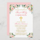 O Elegante Watercolor Floral Branco Cor-de-Água Cor-de-Rosa Primeiro Convite à Santa Comunhão inclui rosas cor-de-rosa, flores brancas e verde. Dourada Cruz.