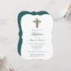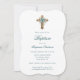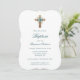 Um convite de batismo de garoto elegante com uma cruz floral de ouro. Personalize facilmente este convite minimalista online.