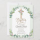 Cruz floral elegante, folhas de cor d'água e bolinhas.