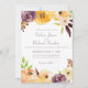 Estes convites de casamento apresentam uma floral de aquarela num estilo solto e romântico. Pêssegos, dourados e roxas constituem a paleta de cores.