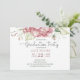 Delicar modelo de convites de festa de formatura floral cor-de-rosa. Excelente para graduação em primavera ou verão. Delicado e elegante com uma fonte de script contrastada com uma moderna fonte simples sans serif. Personalize com seu nome e data de formatura. Todos os tamanhos e cores do texto podem ser modificados, com exceção da menção "festa de formatura".