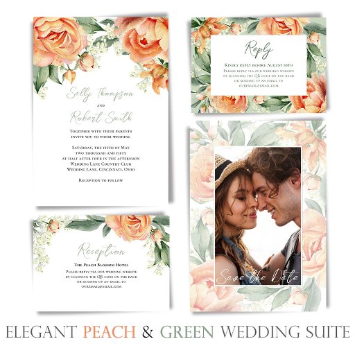 Watercolor Floral Peach Wedding Stationery SuiteCriado por laura lacina