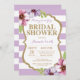 Chá de panela roxo e Dourado. Púrpura de aquarela e flor rosa-floral. Dourada Glitter. Stripes roxa e branca. Para mais personalização, clique no botão "Personalizar" e use nossa ferramenta de design para modificar este modelo.
