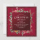 Os Convites de festas de Natal Feriado Luncheon Glitter Winter Floral apresentam um quadro floral de Poinsettia vermelho-aquarela em um fundo vermelho-burgundy com seu Convite de festas de Natal personalizado no centro. Concebido por © Evco Holidays www.zazzle.com/store/evcoholidays